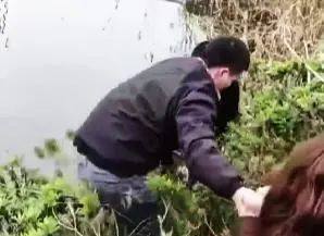 ▲将落水女子背往警务室