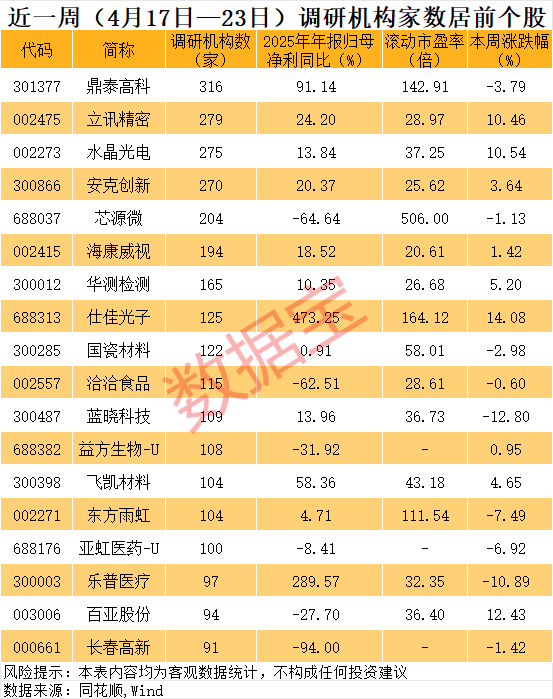 立讯精密、水晶光电、安克创新、芯源微等10多只个股也获得超百家机构调研。