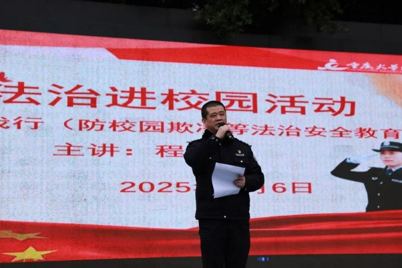 同一天,虎溪派出所民警走进重庆大学城人民小学开展法治宣讲。社区民警程岐结合真实案例,用通俗易懂的语言讲解《未成年人保护法》《预防未成年人犯罪法》等法律知识,重点剖析校园欺凌、网络暴力的危害及法律后果。通过情景模拟、互动问答,引导学生树立法治观念,学会用法律武器维护权益。